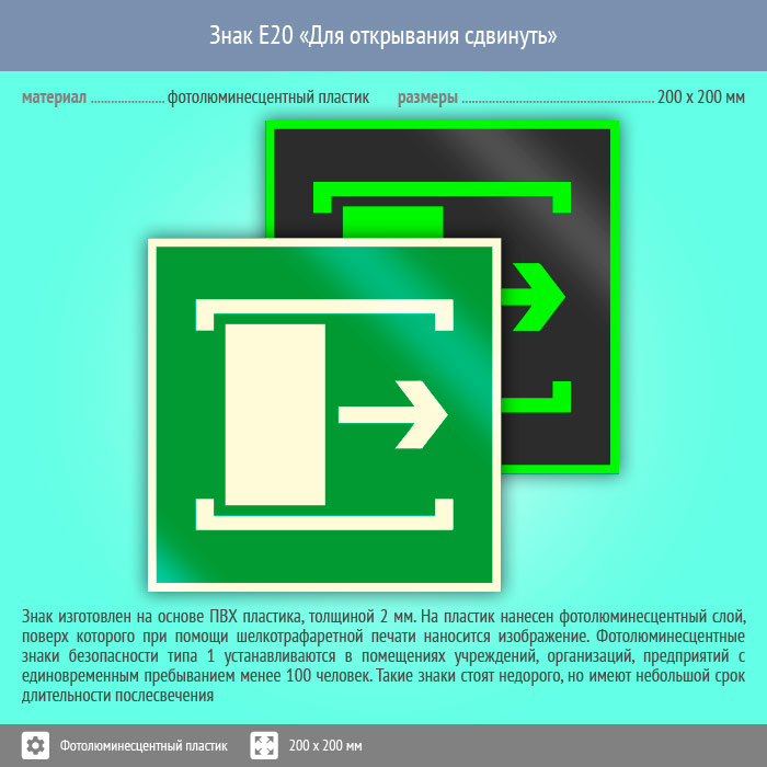 Знак E20 «Для открывания сдвинуть» (фотолюминесцентный пластик, 200х200 мм) в Сургуте купить