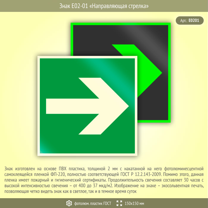 Знак E02-01 «Направляющая стрелка» (фотолюминесцентный пластик ГОСТ 34428-2018, 150х150 мм) в Сургуте купить