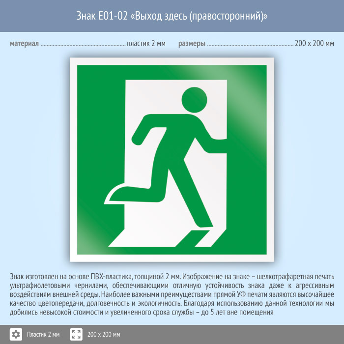 Знак E01-02 «Выход здесь (правосторонний)» (пластик, 200х200 мм) в Сургуте купить