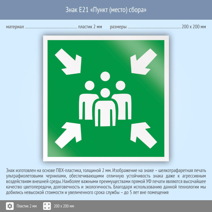 Знак E21 «Пункт (место) сбора» (пластик, 200х200 мм) в Сургуте купить