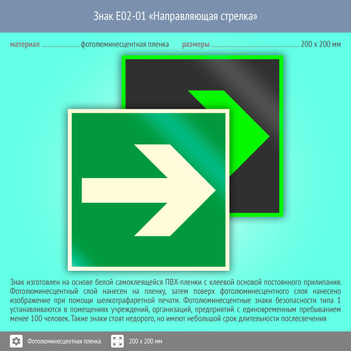 Знак E02-01 «Направляющая стрелка» (фотолюминесцентная пленка, 200х200 мм) в Сургуте купить