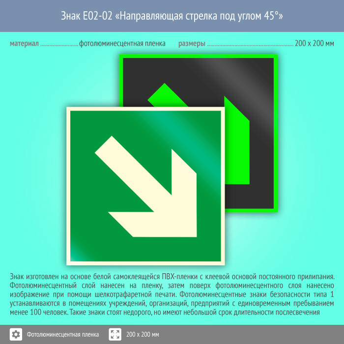 Знак E02-02 «Направляющая стрелка под углом 45°» (фотолюминесцентная пленка, 200х200 мм) в Сургуте купить