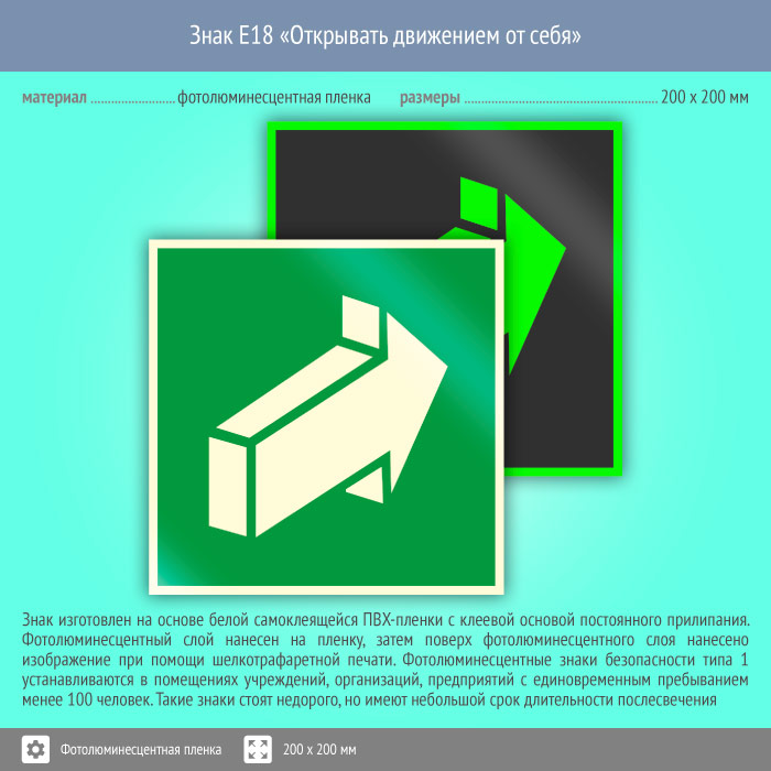Знак E18 «Открывать движением от себя» (фотолюминесцентная пленка, 200х200 мм) в Сургуте купить
