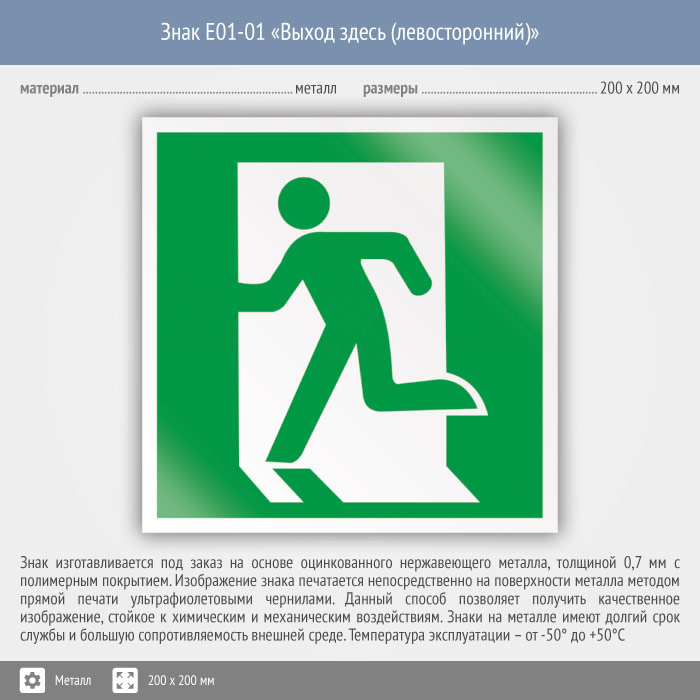 Знак E01-01 «Выход здесь (левосторонний)» (металл, 200х200 мм) в Сургуте купить