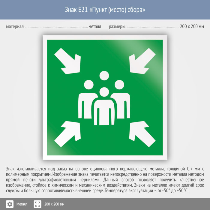 Знак E21 «Пункт (место) сбора» (металл, 200х200 мм) в Сургуте купить
