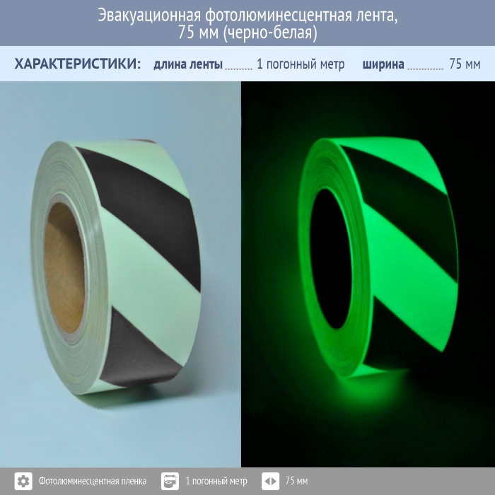 Эвакуационная фотолюминесцентная лента, 75 мм (черно-белая) в Сургуте купить