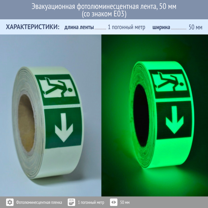 Эвакуационная фотолюминесцентная лента, 50 мм (со знаком E03) в Сургуте купить