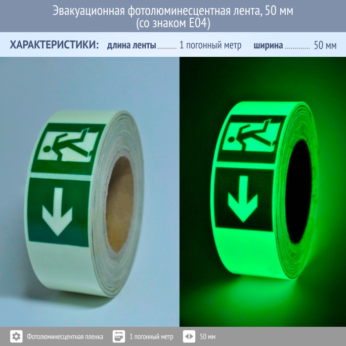 Эвакуационная фотолюминесцентная лента, 50 мм (со знаком E04) в Сургуте купить