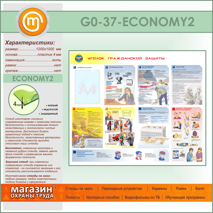 Стенд «Уголок гражданской защиты» с карманом (GO-37-ECONOMY2) в Сургуте купить