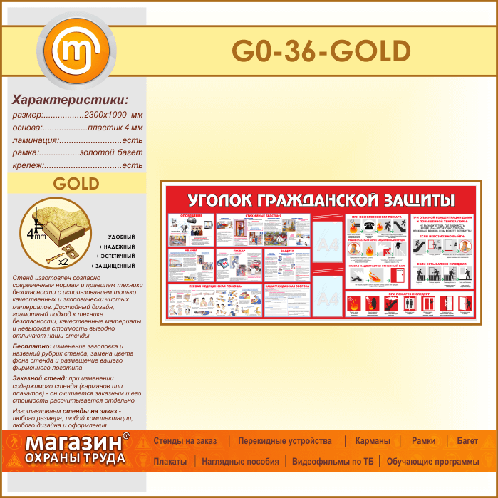 Стенд «Уголок гражданской защиты» c 2 карманами (GO-36-GOLD) в Сургуте купить