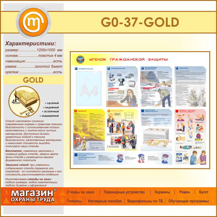Стенд «Уголок гражданской защиты» с карманом (GO-37-GOLD) в Сургуте купить