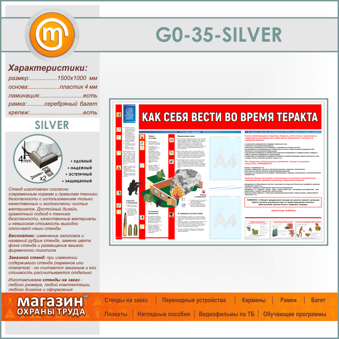 Стенд «Как себя вести во время теракта» c 2 карманами (GO-35-SILVER) в Сургуте купить