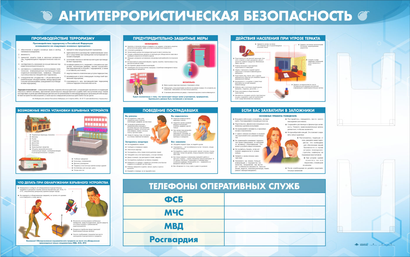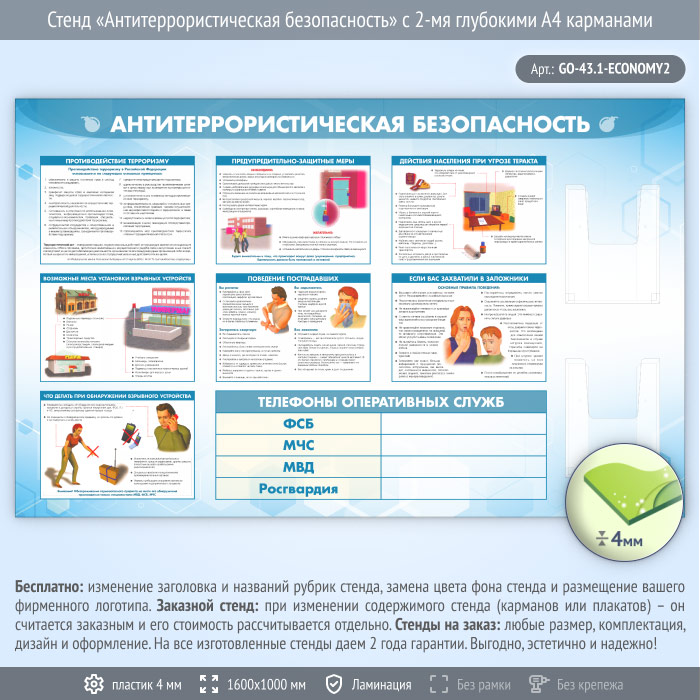 Стенд «Антитеррористическая безопасность» с 2-мя глубокими А4 карманами (GO-43.1-ECONOMY2) в Сургуте купить