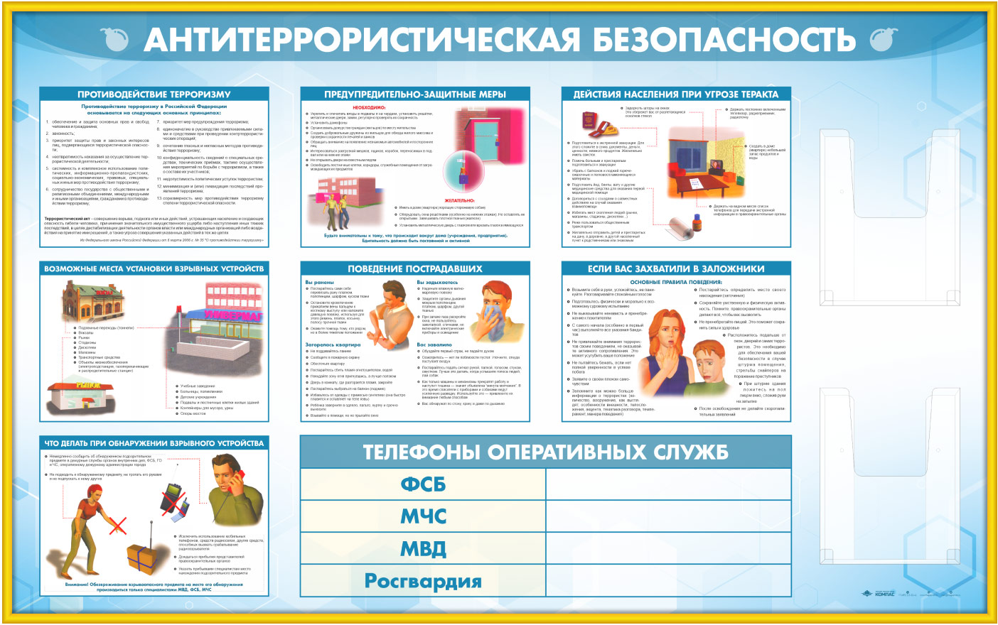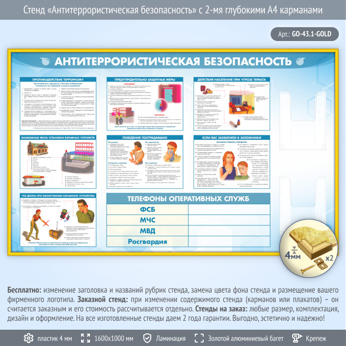 Стенд «Антитеррористическая безопасность» с 2-мя глубокими А4 карманами (GO-43.1-GOLD) в Сургуте купить