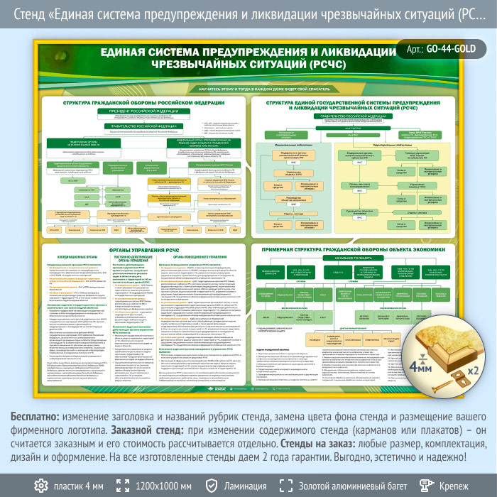 Стенд «Единая система предупреждения и ликвидации чрезвычайных ситуаций (РСЧС)» (GO-44-GOLD) в Сургуте купить