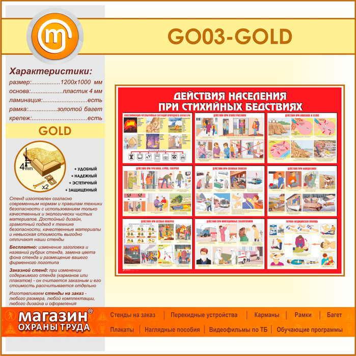 Стенд «Действия населения при стихийных бедствиях» (GO-03-GOLD) в Сургуте купить