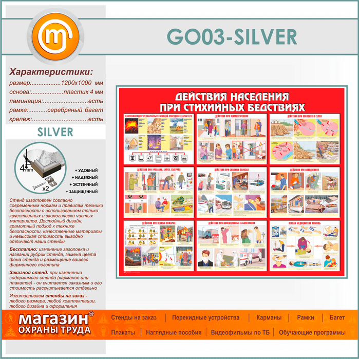 Стенд «Действия населения при стихийных бедствиях» (GO-03-SILVER) в Сургуте купить