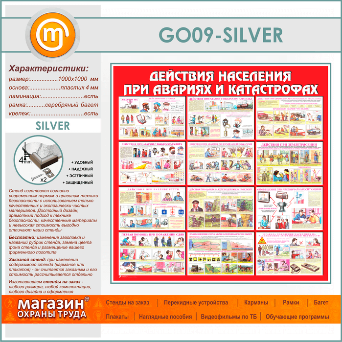 Стенд «Действия населения при авариях и катастрофах» (GO-09-SILVER) в Сургуте купить