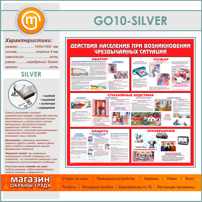 Стенд «Действия населения при возникновении чрезвычайных ситуаций» (GO-10-SILVER) в Сургуте купить