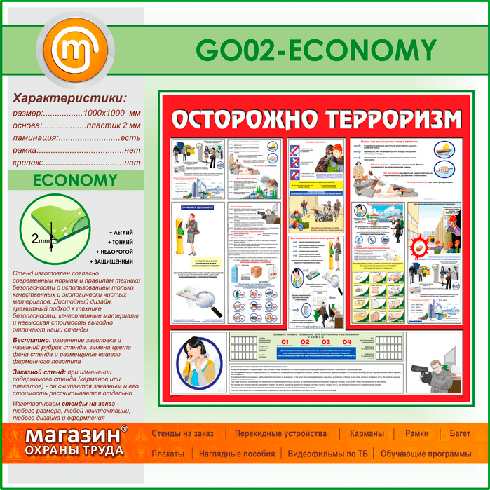 Стенд «Осторожно терроризм!» (GO-02-ECONOMY) в Сургуте купить