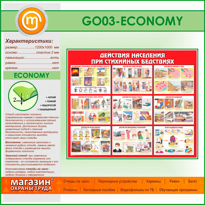 Стенд «Действия населения при стихийных бедствиях» (GO-03-ECONOMY) в Сургуте купить