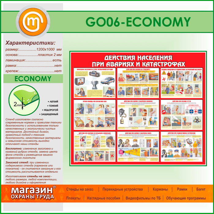 Стенд «Действия населения при авариях и катастрофах» (GO-06-ECONOMY) в Сургуте купить