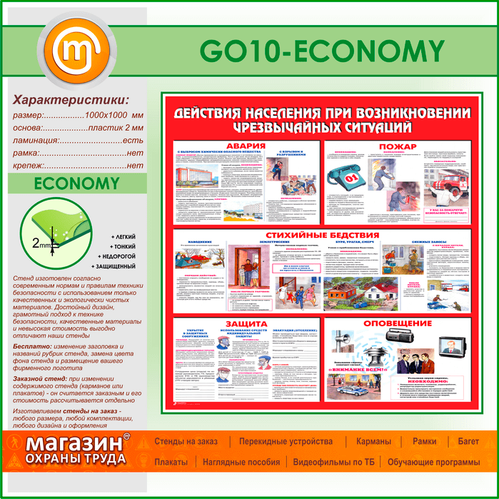 Стенд «Действия населения при возникновении чрезвычайных ситуаций» (GO-10-ECONOMY) в Сургуте купить