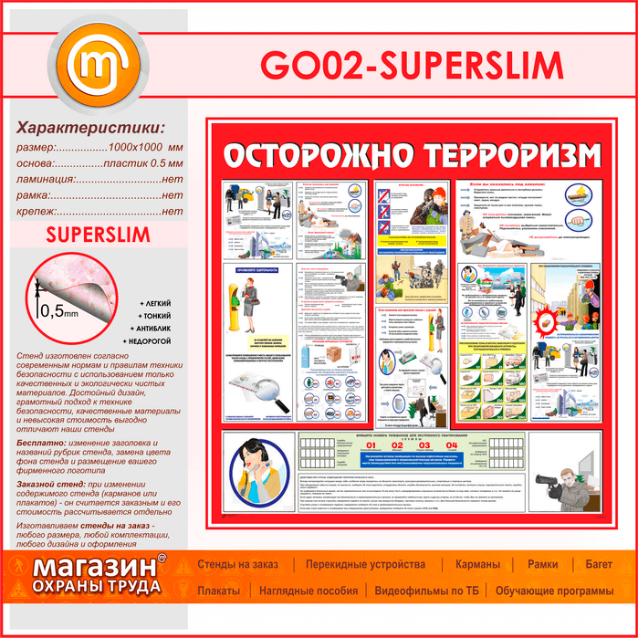 Стенд «Осторожно терроризм!» (GO-02-SUPERSLIM) в Сургуте купить
