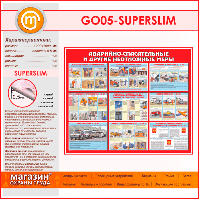 Стенд «Аварийно-спасательные и другие неотложные меры» (GO-05-SUPERSLIM) в Сургуте купить
