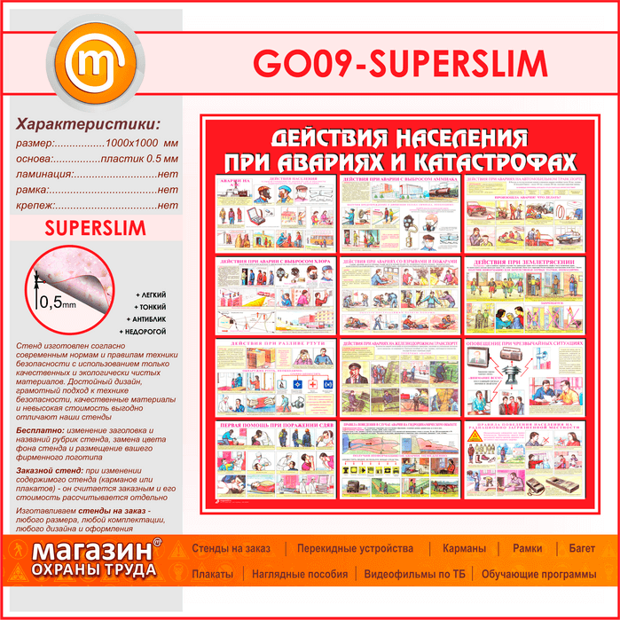 Стенд «Действия населения при авариях и катастрофах» (GO-09-SUPERSLIM) в Сургуте купить