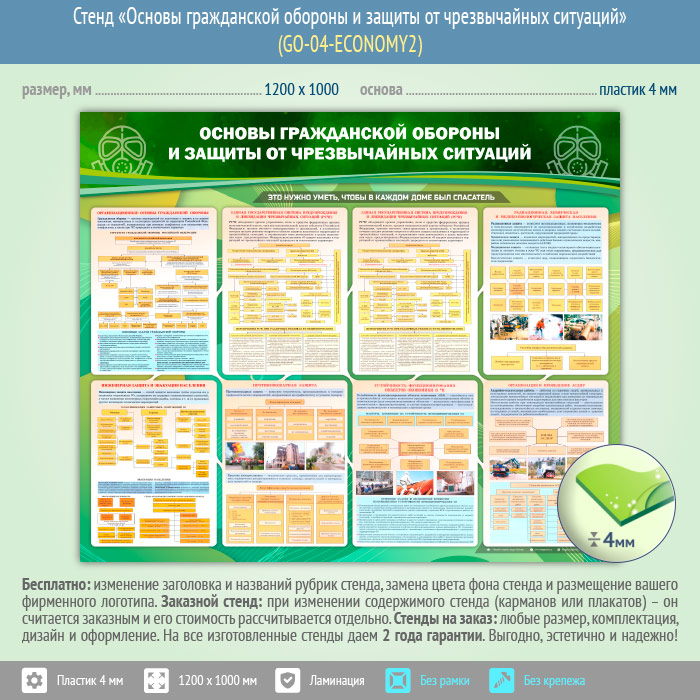 Стенд «Основы гражданской обороны и защиты от чрезвычайных ситуаций» (GO-04-ECONOMY2) в Сургуте купить