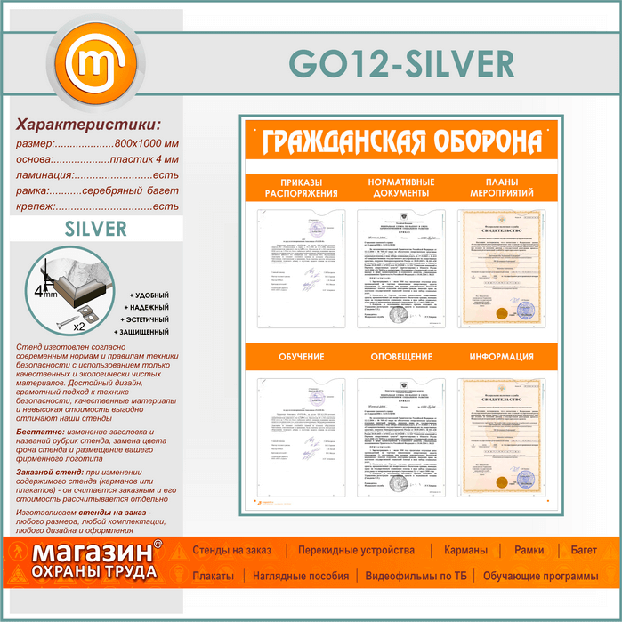 Стенд «Гражданская оборона» с 6 плоскими карманами (GO-12-SILVER) в Сургуте купить