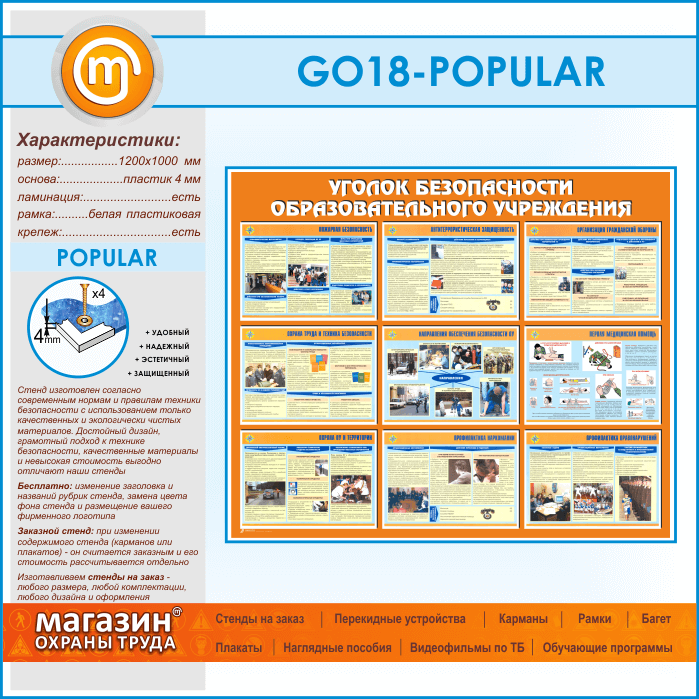 Стенд «Уголок безопасности образовательного учреждения» (GO-18-POPULAR) в Сургуте купить