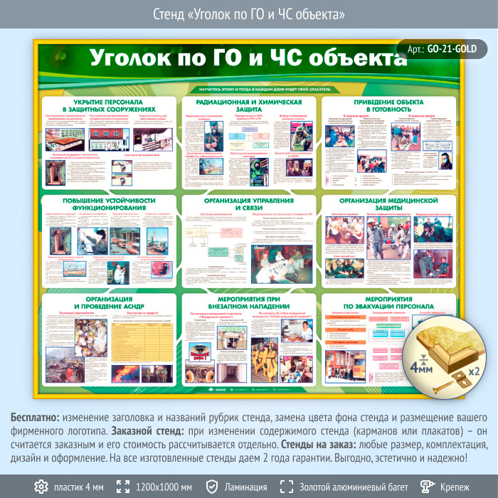 Стенд «Уголок по ГО и ЧС объекта» (GO-21-GOLD) в Сургуте купить