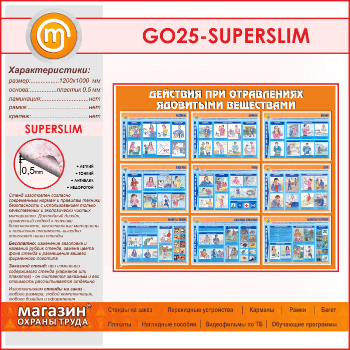 Стенд «Действия при отравлении ядовитыми веществами» (GO-25-SUPERSLIM) в Сургуте купить