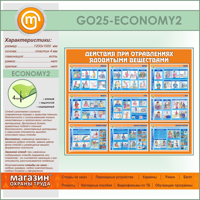 Стенд «Действия при отравлении ядовитыми веществами» (GO-25-ECONOMY2) в Сургуте купить