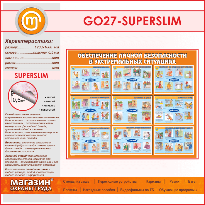 Стенд «Обеспечение личной безопасности в экстремальных ситуациях» (GO-27-SUPERSLIM) в Сургуте купить