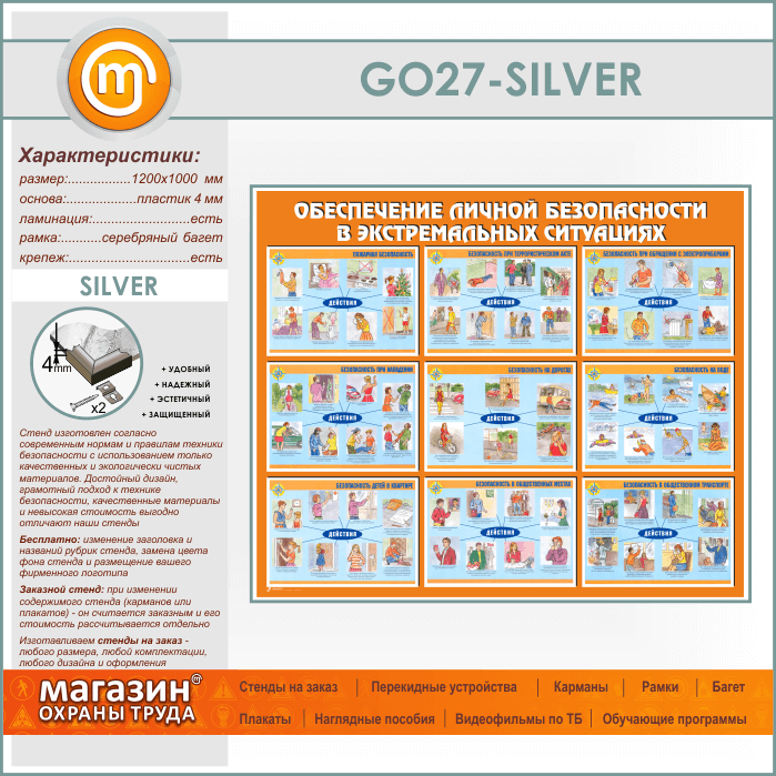 Стенд «Обеспечение личной безопасности в экстремальных ситуациях» (GO-27-SILVER) в Сургуте купить