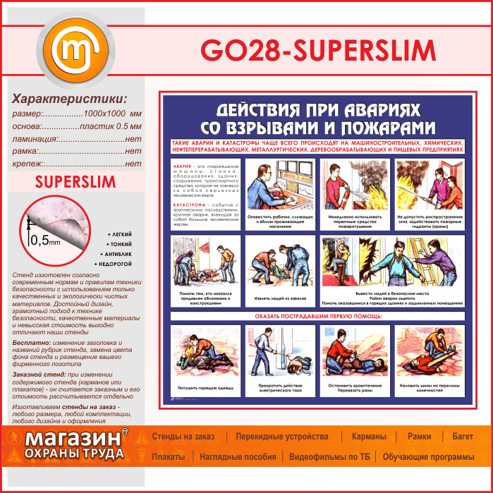Стенд «Действия при авариях со взрывами и пожарами» (GO-28-SUPERSLIM) в Сургуте купить
