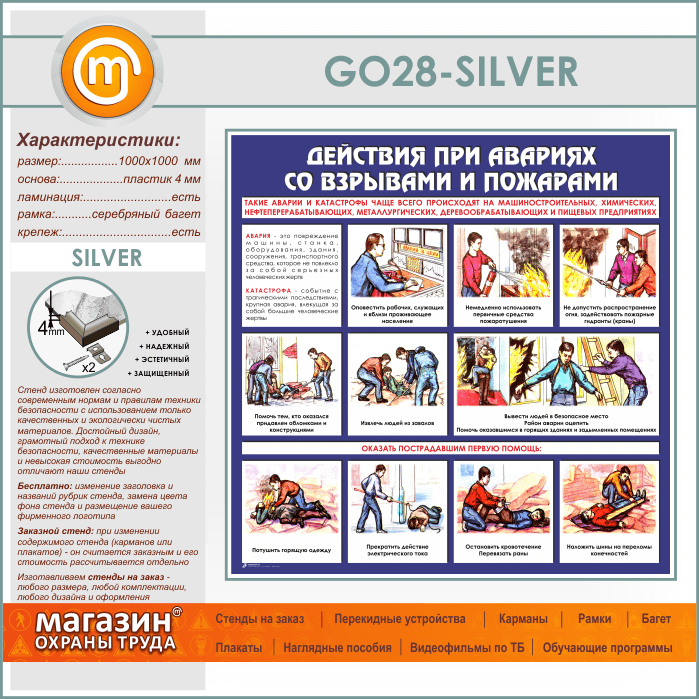 Стенд «Действия при авариях со взрывами и пожарами» (GO-28-SILVER) в Сургуте купить