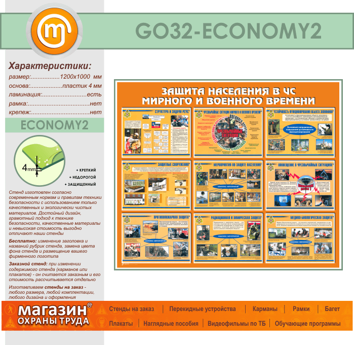 Стенд «Защита населения в ЧС мирного и военного времени» (GO-32-ECONOMY2) в Сургуте купить