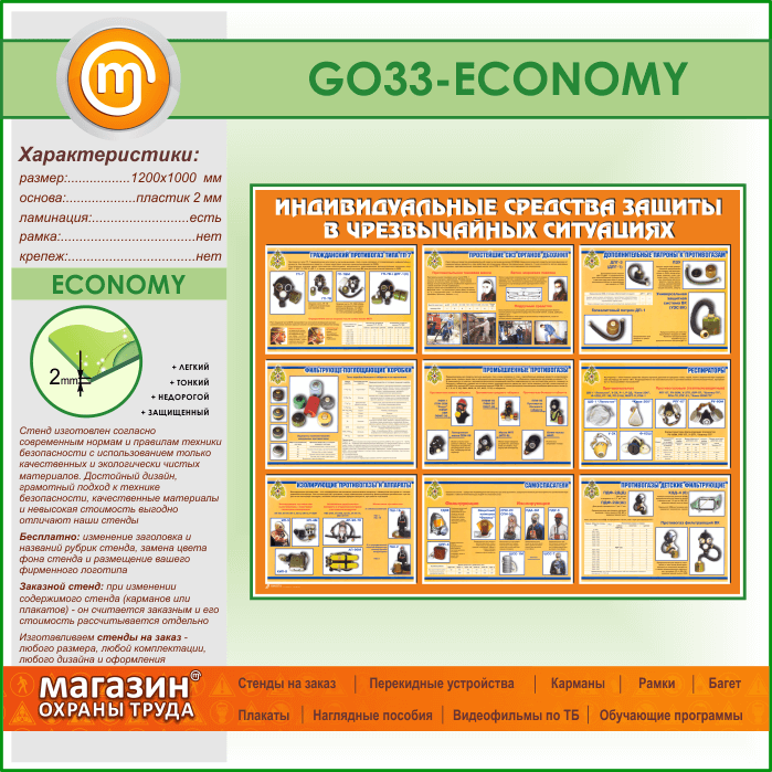 Стенд «Индивидуальные средства защиты в чрезвычайных ситуациях» (GO-33-ECONOMY) в Сургуте купить