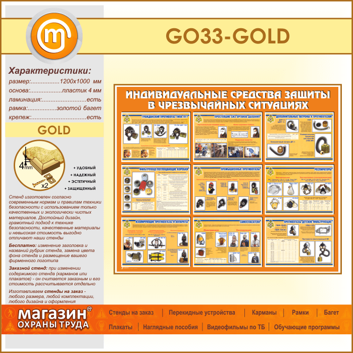 Стенд «Индивидуальные средства защиты в чрезвычайных ситуациях» (GO-33-GOLD) в Сургуте купить