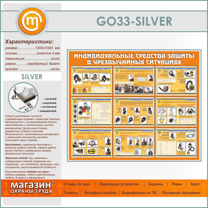 Стенд «Индивидуальные средства защиты в чрезвычайных ситуациях» (GO-33-SILVER) в Сургуте купить