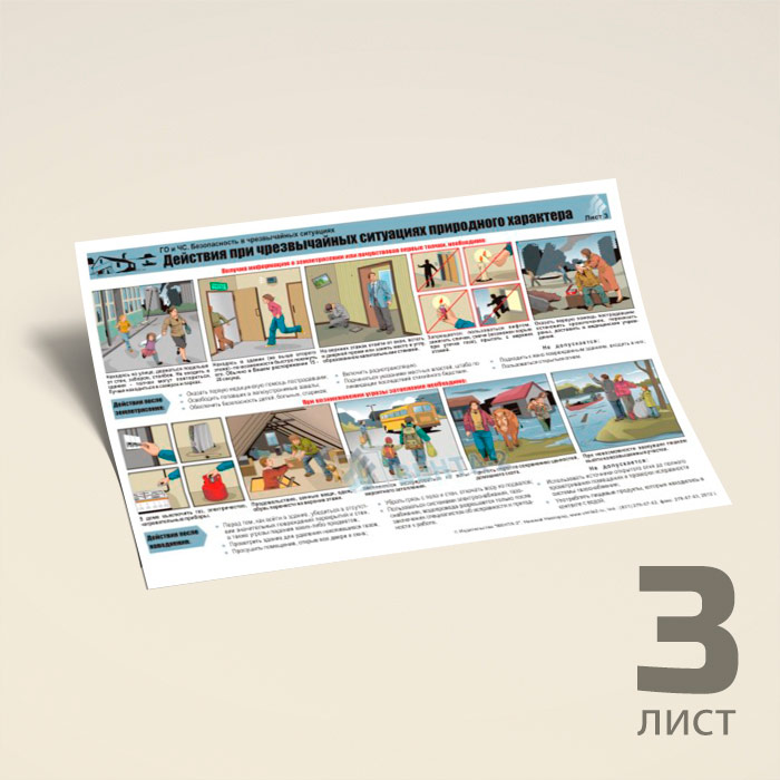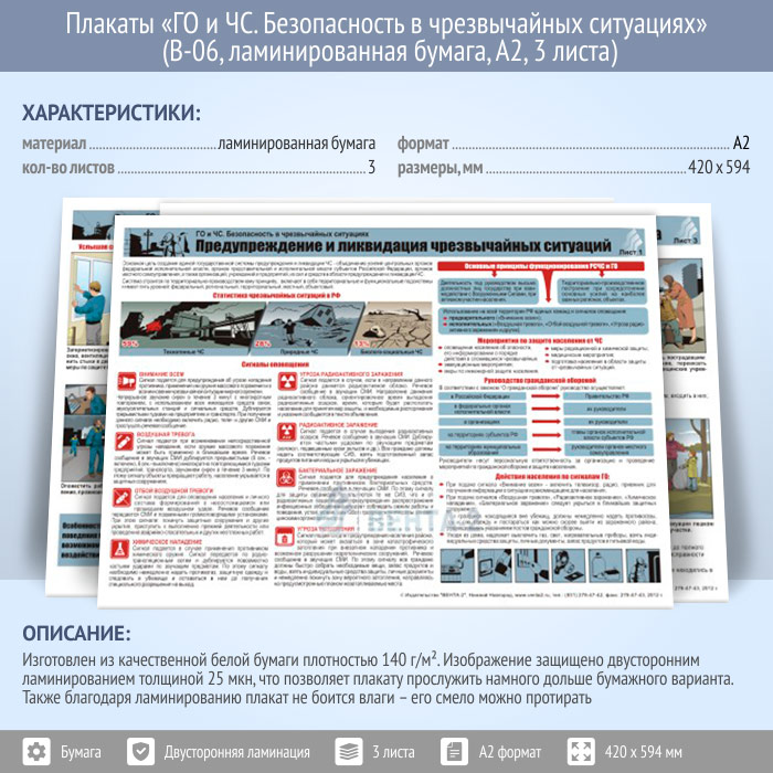 Плакаты «ГО и ЧС. Безопасность в чрезвычайных ситуациях» (В-06, ламинированная бумага, А2, 3 листа) в Сургуте купить