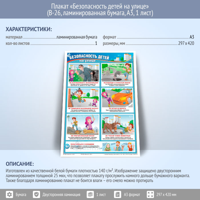 Плакат «Безопасность детей на улице» (В-26, ламинированная бумага, А3, 1 лист) в Сургуте купить