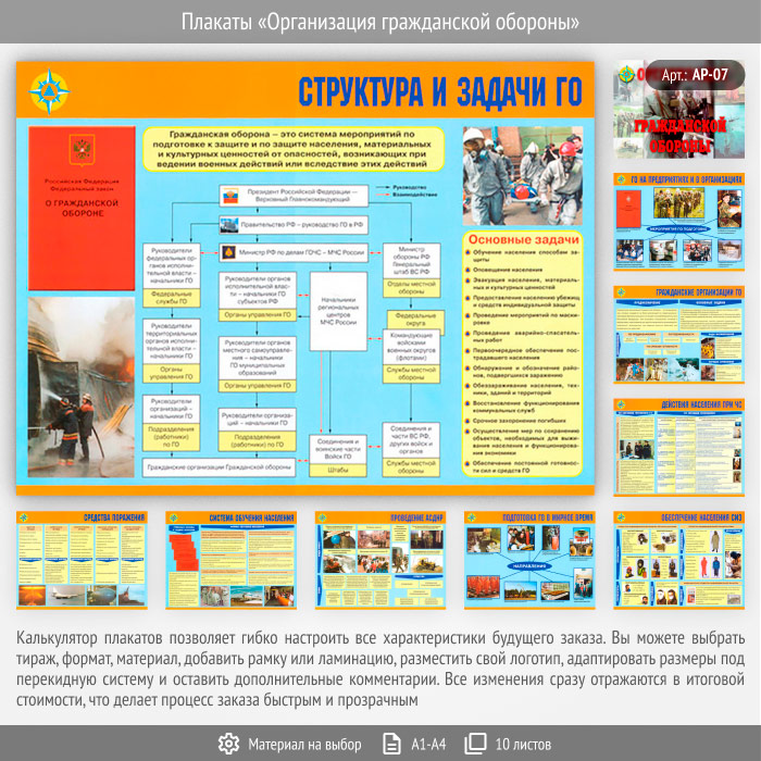 Плакаты «Организация гражданской обороны» (АР-07, 10 листов) в Сургуте купить