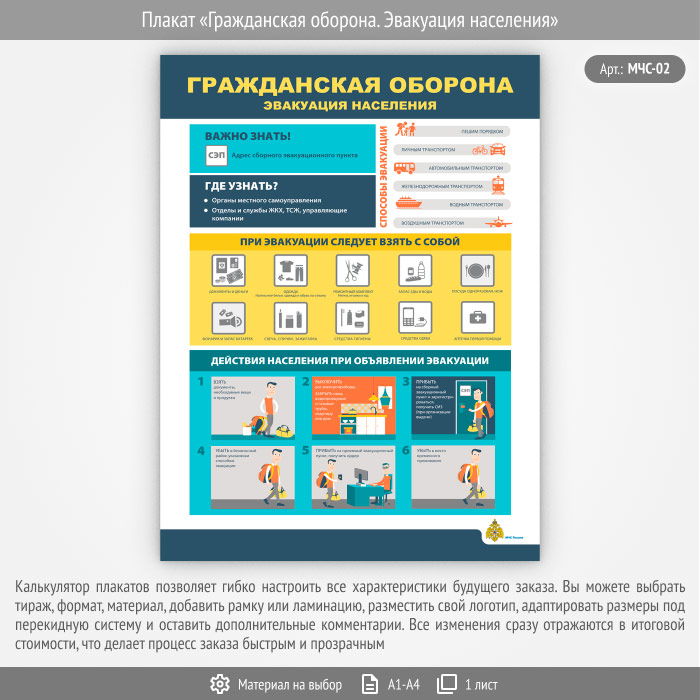 Плакат «Гражданская оборона. Эвакуация населения» (МЧС-02, 1 лист) в Сургуте купить