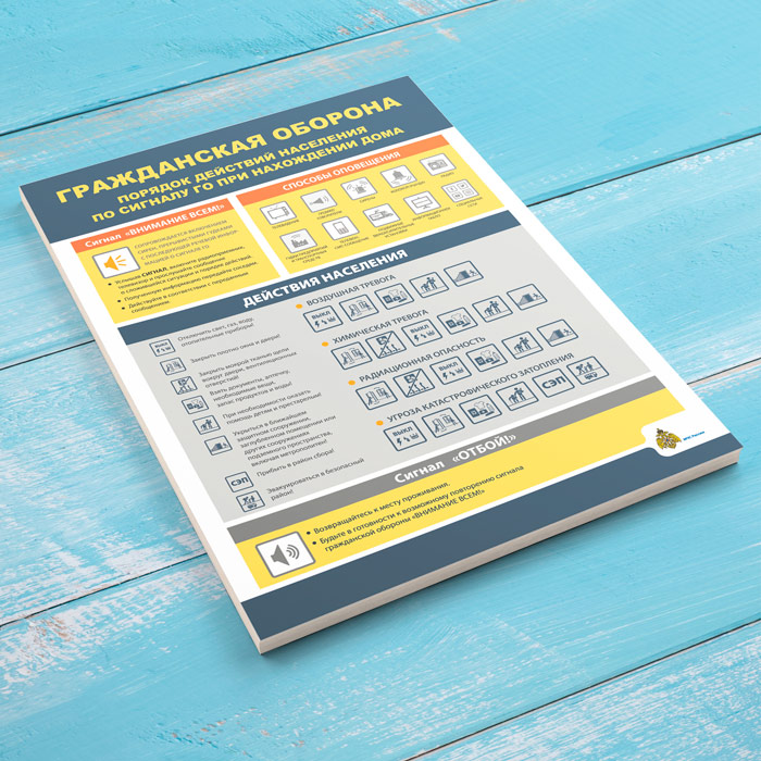 Плакат «Гражданская оборона. Порядок действия населения по сигналу ГО при нахождении дома» (МЧС-04, 1 лист) в Сургуте купить