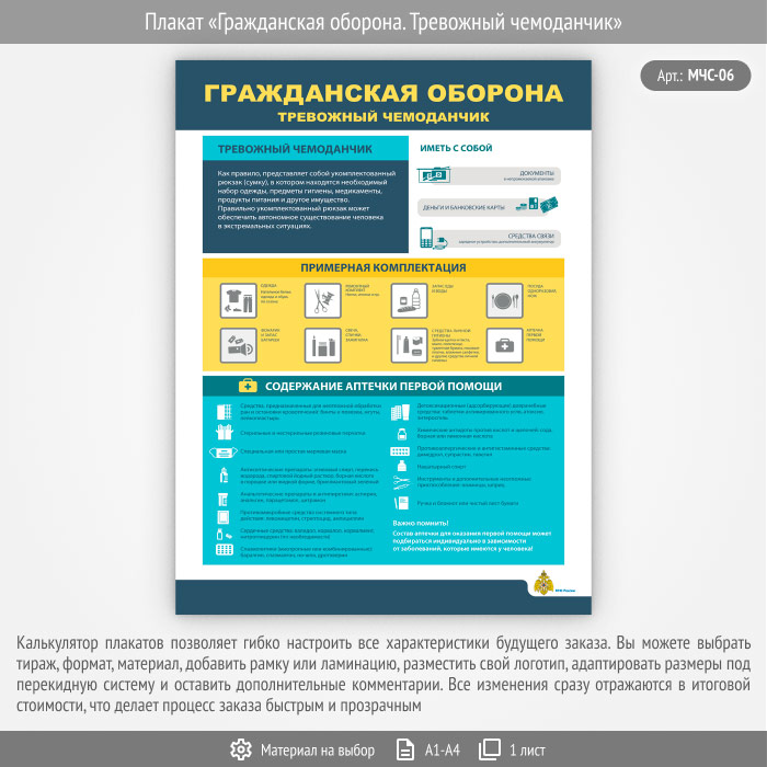 Плакат «Гражданская оборона. Тревожный чемоданчик» (МЧС-06, 1 лист) в Сургуте купить